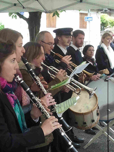 Malgré des températures plutôt fraîches pour un moi de mai, l’ Harmonie a assuré les commémorations de l armistice de 1945 tant à Meylan qu’à La Tronche où Orianne a lancé un émouvant Chant des Partisans et où les musiciens attentifs aux enfants entonnant la Marseillaise ont joué veillant à ne pas couvrir leurs voix.